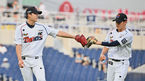 [OSEN=창원, 이석우 기자] 14일 창원 NC파크에서 ‘2022 신한은행 SOL KBO리그’ NC 다이노스와 LG 트윈스의 경기가 열렸다.NC 다이노스 김태경이 2회초 수비를 무실점으로 막고 박건우와 하이파이브를 하고 있다. 2022.08.14 / foto0307