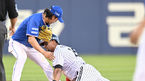 [OSEN=잠실, 김성락 기자] 16일 오후 서울 잠실구장에서 ‘2022 신한은행 SOL KBO리그’ LG 트윈스와 삼성 라이온즈의 경기가 열렸다.1회말 2사 2루 LG 가르시아가 1타점 적시타를 날린 뒤 2루까지 내달렸지만 삼성 2루수 김상수에