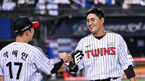 [OSEN=잠실,박준형 기자] 17일 서울 잠실구장에서 ‘2022 신한은행 SOL KBO리그’ LG 트윈스와 삼성 라이온즈의 경기가 진행됐다.2회말 이닝종료후 역전타 날린 채은성이 오지환과 하이파이브를 하고 있다. 2022.08.17 / soul1014@osen.c