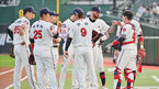 [OSEN=부산, 이석우 기자] 18일 부산 사직구장에서 ‘2022 신한은행 SOL KBO리그’ 롯데 자이언츠와 KT 위즈의 경기가 열렸다.복귀 첫 홈 선발 등판한 롯데 자이언츠 스트레일리가 선수들과 인사를 하고 있다. 2022.08.18 / foto0307@ose