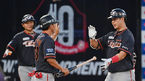 [OSEN=부산, 이석우 기자] 21일 부산 사직구장에서 ‘2022 신한은행 SOL KBO리그’ 롯데 자이언츠와 한화 이글스의 경기가 열렸다.한화 이글스 김인환이 6회초 중월 솔로 홈런을 치고 하이파이브를 하고 있다. 2022.08.21 / foto0307@o
