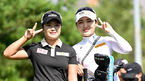 [OSEN=정선, 최규한 기자] 21일 강원도 정선군 하이원리조트CC(파72, 6517야드)에서 ’하이원리조트 여자오픈 2022’ 최종라운드가 열렸다.현세린과 배소현이 1번홀 티샷을 날린 뒤 포즈를 취하고 있다. 2022.08.21 / dreamer@osen.co.kr