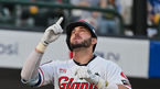 [OSEN=부산, 이석우 기자] 25일 부산 사직구장에서 ‘2022 신한은행 SOL KBO리그’ 롯데 자이언츠와 삼성 라이온즈의 경기가 열렸다.롯데 자이언츠 렉스가 1회말 우월 솔로 홈런을 치고 세리머니를 하고 있다. 2022.08.25 / foto0307@o
