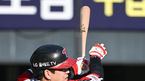 [OSEN=잠실,박준형 기자] 28일 오후 서울 잠실구장에서 ‘2022 신한은행 SOL KBO리그’ LG 트윈스와 키움 히어로즈의 경기가 진행됐다.2회말 1사 1,2루 LG 유강남이 선취 1타점를 날린뒤 세리머니를 하고 있다. LG 통산 67,000루타. 20