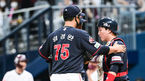 [OSEN=고척,박준형 기자] 31일 오후 서울 고척스카이돔에서 ‘2022 신한은행 SOL KBO리그’ 키움 히어로즈와 롯데 자이언츠의 경기가 진행됐다.3회말 무사 만루 롯데 임경완 코치가 마운드에 올라 박세웅 선발투수, 정보근 포