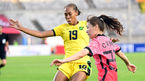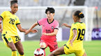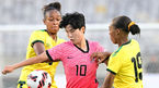 [OSEN=화성, 조은정 기자] 3일 오후 화성종합경기타운주경기장에서'신세계 이마트 초청 여자축구 국가대표팀 친선경기' 한국과 자메이카의 경기가 열렸다.후반 한국 지소연이 자메이카의 압박을 받고 있다. 2022.09.03 /cej@osen.co.kr