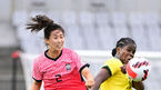 [OSEN=화성, 조은정 기자] 3일 오후 화성종합경기타운주경기장에서'신세계 이마트 초청 여자축구 국가대표팀 친선경기' 한국과 자메이카의 경기가 열렸다.전반 한국 추효주가 자메이카와 볼경합을 하고 있다. 2022.09.03 /cej@osen.co.kr