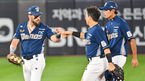 [OSEN=부산, 이석우 기자] 10일 부산 사직구장에서 ‘2022 신한은행 SOL KBO리그’ 롯데 자이언츠와 NC 다이노스의 경기가 열렸다.NC 다이노스 선수들이 롯데 자이언츠에 6-3으로 승리한 후 기쁨을 나누고 있다. 2022.09.10 / foto0307@o