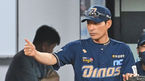 [OSEN=부산, 이석우 기자] 10일 부산 사직구장에서 ‘2022 신한은행 SOL KBO리그’ 롯데 자이언츠와 NC 다이노스의 경기가 열렸다.NC 다이노스 강인권 감독대행이 8회초 2점 홈런을 친 노진혁에게 엄지척을 하고 있다. 2022.09.10 / fo