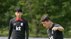 [OSEN=파주, 최규한 기자] 파울루 벤투 감독이 이끄는 대한민국 축구대표팀이 20일 파주 국가대표 트레이닝 센터(NFC)에서 ‘2022 카타르월드컵’을 대비한 평가전 소집 훈련을 진행했다.A대표팀 손흥민과 김진수가 웜업 훈련