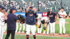 [OSEN=부산, 이석우 기자] 2일 부산 사직구장에서 ‘2022 신한은행 SOL KBO리그’ 롯데 자이언츠와 두산 베어스의 경기가 열렸다.롯데 자이언츠 래리 서튼 감독과 선수들이 두산 베어스에 3-1로 승리한 후 팬들에게 인사를 하고