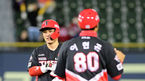[OSEN=잠실, 지형준 기자] 4일 오후 서울 잠실야구장에서 '2022 신한은행 SOL KBO 리그' LG 트윈스와 KIA 타이거즈의 경기가 열렸다.6회초 무사 2,3루에서 KIA 황대인이 박찬호의 희생플라이로 득점에 성공하며 김종국 감독과 기뻐하고