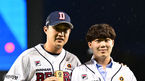 [OSEN=잠실, 최규한 기자] 6일 서울 잠실야구장에서 ‘2022 신한은행 SOL KBO리그’ 두산 베어스와 삼성 라이온즈의 경기가 열린다.KBO 9월 팬퍼스트상을 수상한 두산 김인태와 팬인 지은혁 군이 기념패를 들고 포즈를 취하고 있