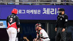 [OSEN=수원, 지형준 기자] 13일 오후 경기도 수원 KT위즈파크에서 2022 신한은행 SOL KBO리그 포스트시즌 와일드카드 결정전 1차전 KT 위즈와 KIA 타이거즈의 경기가 열린다.8회초 2사에서 KIA 김선빈이 스트라이크 판정에 불만을 나타내