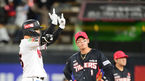 [OSEN=수원, 이대선 기자] 13일 오후 경기도 수원 KT위즈파크에서 2022 신한은행 SOL KBO리그 포스트시즌 와일드카드 결정전 1차전 KT 위즈와 KIA 타이거즈의 경기가 열렸다.3회말 1사 1,2루에서 KT 조용호가 우월 2타점 적시 2루타를 치고