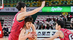 [OSEN=창원, 이석우 기자] 18일 창원 실내체육관에서 ‘2022-2023 SKT 에이닷 프로농구’ 창원 LG와 전주 KCC의 경기가 열렸다.전주 KCC 김상규가 창원 LG 김준일의 마크를 피해 골밑슛을 시도하고 있다. 2022.10.18 / foto0307@osen.co.kr