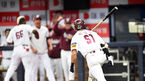 [OSEN=고척, 이대선 기자]27일 오후 서울 고척스카이돔에서 2022 신한은행 SOL KBO리그 포스트시즌 플레이오프 3차전 키움 히어로즈와 LG 트윈스의 경기가 열렸다.7회말 2사 1루에서 키움 임지열이 중월 투런 홈런을 치고환호하고 있다
