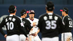 [OSEN=고척, 김성락 기자] 28일 오후 서울 고척스카이돔에서 ‘2022 신한은행 SOL KBO리그 포스트시즌 플레이오프 4차전’ 키움 히어로즈와 LG 트윈스의 경기가 열렸다.6회초 2사 LG 문보경이 헛스윙 삼진아웃된 뒤 아쉬워하고