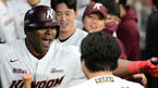 [OSEN=고척, 김성락 기자] 28일 오후 서울 고척스카이돔에서 ‘2022 신한은행 SOL KBO리그 포스트시즌 플레이오프 4차전’ 키움 히어로즈와 LG 트윈스의 경기가 열렸다.3회말 2사 키움 푸이그가 역전 솔로 홈런을 날린 뒤 홈에서