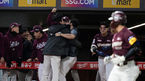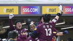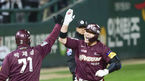 [OSEN=인천, 지형준 기자] 1일 오후 인천 SSG랜더스필드에서 ‘2022 KBO리그 포스트시즌 한국시리즈’ 1차전 SSG 랜더스와 키움 히어로즈의 경기가 열렸다.9회초 1사 2루에서 키움 전병우가 역전 투런포를 날리고 동료선수들과