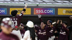 [OSEN=인천, 지형준 기자] 1일 오후 인천 SSG랜더스필드에서 ‘2022 KBO리그 포스트시즌 한국시리즈’ 1차전 SSG 랜더스와 키움 히어로즈의 경기가 열렸다.9회초 1사 2루에서 키움 전병우가 역전 투런포를 날리고 송성문과 기뻐