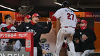 [OSEN=인천,박준형 기자] 1일 오후 인천 SSG랜더스필드에서 ‘2022 KBO리그 포스트시즌 한국시리즈’ 1차전 SSG 랜더스와 키움 히어로즈의 경기가 열렸다.9회초 1사 2루 키움 대타 전병우가 역전 2점 홈런을 날리고 환호하고 있