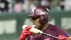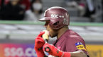 [OSEN=인천, 박준형 기자] 2일 오후 인천 SSG랜더스필드에서 ‘2022 KBO리그 포스트시즌 한국시리즈’ 2차전 SSG 랜더스와 키움 히어로즈의 경기가 열렸다.4회초 1사 키움 푸이그가 방망이를 혀로 핥고 있다. 2022.11.02 / soul1014@osen