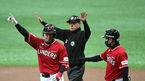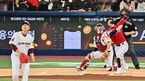 [OSEN=고척, 이대선 기자] 5일 오후 서울 고척스카이돔에서 2022 신한은행 SOL KBO리그 포스트시즌 한국시리즈 3차전 키움 히어로즈와 SSG 랜더스의 경기가 열렸다.1회초 1사 2루에서 SSG 최정이 우전 적시타를 치고 환호하고 있다. 2022.1