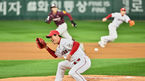 [OSEN=인천, 민경훈 기자] 7일 오후 인천 SSG랜더스필드에서 ‘2022 KBO리그 포스트시즌 한국시리즈’ 5차전 SSG 랜더스와 키움 히어로즈의 경기가 열렸다.2회초 1사 주자 1,2루 키움 전병우의 유격수 앞 병살타때 SSG 2루수 김성