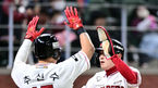 [OSEN=인천, 이석우 기자] 8일 인천 SSG 랜더스필드에서 ‘2022 신한은행 SOL KBO리그 한국시리즈’ SSG 랜더스와 키움 히어로즈의 6차전 경기가 열렸다.SSG 랜더스 김성현이 6회말 1사 2,3루 2타점 적시 2루타를 치고 환호하고 있다