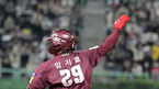 [OSEN=인천,박준형 기자] 8일 오후 인천 SSG랜더스필드에서 ‘2022 KBO리그 포스트시즌 한국시리즈’ 6차전 SSG 랜더스와 키움 히어로즈의 경기가 열렸다.3회초 무사 1루 키움 임지열이 선취 2점 홈런을 날리고 베이스를 돌고 있