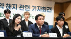 [OSEN=지형준 기자]16일 오후 서울 서초구 변호사회관에서 그룹 오메가엑스 전속계약 해지 관련 기자회견을 열렸다.서주연, 노종언 변호사와 오메가엑스가 입장을 밝히고 있다. 2022.11.16 /jpnews@osen.co.kr