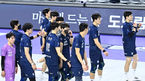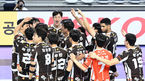 [OSEN=인천, 이대선 기자] OK금융그룹은 20일 인천 계양체육관에서 열린 대한항공과 도드람 2022~2023 V리그 남자부 2라운드 경기에서 세트스코어 3-2(25-19, 22-25, 29-27, 17-25, 15-)으로 승리했다.경기 종료 후 OK금융그룹 선수들이 승리에