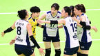 [OSEN=수원, 김성락 기자] 20일 오후 수원시 장안구 수원종합운동장에서 '도드람 2022-23시즌 V-리그' 여자부 현대건설과 IBK 기업은행의 경기가 열렸다.1세트 IBK 선수들이 득점에 기뻐하고 있다. 2022.11.20 /ksl0919@osen.co.kr