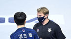 [OSEN=인천, 이대선 기자] 20일 오후 인천 계양체육관에서 도드람 2022~2023 V-리그 남자부 대한항공과 OK금융그룹의 경기가 열렸다.3세트 대한한공 토미 틸리카이넨 감독이 득점에 성공한 김민재와 환호하고 있다. 2022.11.20 /sunday@osen.