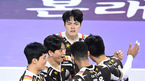 [OSEN=인천, 이대선 기자] 20일 오후 인천 계양체육관에서 도드람 2022~2023 V-리그 남자부 대한항공과 OK금융그룹의 경기가 열렸다.1세트 OK금융그룹 선수들이 득점에 환호하고 있다. 2022.11.20 /sunday@osen.co.kr