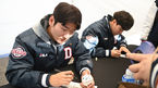 [OSEN=잠실, 조은정 기자] 20일 서울 송파구 잠실구장에서 JTBC 프로그램 ’최강야구’의 최강 몬스터즈와 두산 베어스의 경기에 앞서 두산 곰들의 모임 행사가 열렸다.두산 곽빈이 곰들의 모임 사인회에 참석해 팬들에게 사