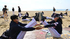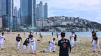 [OSEN=부산, 이석우 기자] 내년에 새로운 모습으로 탈바꿈하기 위해 마무리 캠프 동안 열심히 땀 흘렸던 롯데 투수들이 23일 오전 부산의 대표적인 명소 해운대 해수욕장에서 필라테스와 미니 축구를 하며 하체 강화 훈련과 함께