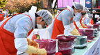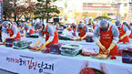 [OSEN=부산, 이석우 기자] 25일 부산 사직야구장 앞 광장에서 부산지역 롯데그룹 계열사가 주관하는 2030부산세계박람회(엑스포) 유치 기원 배추 1만2천30포기 김장 담그기 행사가 열렸다.롯데 자이언츠 이석환 대표와 김원중, 박세