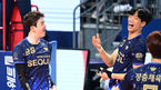 [OSEN=장충, 김성락 기자] 17일 오후 서울 장충체육관에서 ‘도드람 2022-2023 V리그’ 프로배구 남자부 우리카드와 삼성화재의 경기가 열렸다.3세트, 삼성화재 선수들이 세트스코어를 따낸 뒤 기뻐하고 있다. 2022.12.17 /ksl0919@ose