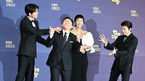 [OSEN=조은정 기자]24일 오후 서울 영등포구 KBS홀에서 2022 KBS 연예대상이 열렸다.방송인 주우재, 조세호, 홍진경, 장우영이 포즈를 취하고 있다. 2022.12.24 /cej@osen.co.kr