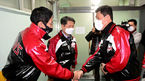 [OSEN=잠실, 최규한 기자] LG 트윈스가 4일 오후 서울 잠실야구장에서 2023년을 맞아 선수단 신년하례식을 가졌다.신년 하례식을 마치고 LG 염경엽 감독과 박동원이 인사를 나누고 있다. 2023.01.04 / dreamer@osen.co.kr