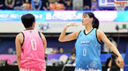 [OSEN=지형준 기자] 8일인천 도원체육관에서 신한은행SOL 2022-2023여자프로농구 올스타 페스티벌이 열렸다.KB 강이슬이 슛을 성공시키고 BNK 진안 앞에서 세리머니를 펼치고 있다. 2023.01.08 /jpnews@osen.co.kr