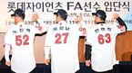 [OSEN=부산, 이석우 기자] 19일 오전 롯데호텔부산에서 롯데 자이언츠 노진혁, 유강남, 한현희의 입단식이 열렸다.노진혁, 유강남, 한현희가 기념촬영을 하고 있다. / foto0307@osen.co.kr