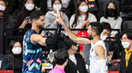 [OSEN=인천,박준형 기자] 28일 오후 인천 삼산체육관에서 '도드람 2022-2023 V-리그’ 올스타전 사전행사가 진행됐다.서브킹 콘테스트 예선 1,2위를 차지한 레오와 이크바이리가 하이파이브를 하고 있다. 2023.01.28 / soul1014@osen.co.kr