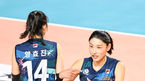 [OSEN=인천,박준형 기자] 28일 오후 인천 삼산체육관에서 '도드람 2022-2023 V-리그’ 올스타전 사전행사가 진행됐다.최효서가 득점 성공한뒤 최정민과 기뻐하고 있다. 2023.01.28 / soul1014@osen.co.kr