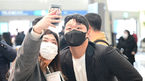 [OSEN=인천공항, 김성락 기자] 30일 오전 LG 트윈스 선수단이 인천공항을 통해 스프링캠프 훈련지인 미국 애리조나로 출국했다.LG 이재원이 팬과함께 기념촬영을 하고 있다. 2023.01.30 /ksl0919@osen.co.kr