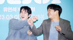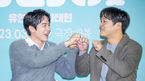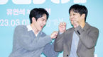 [OSEN=민경훈 기자] 31일 오전 서울 성동구 메가박스 성수에서 영화 '멍뭉이' 제작보고회가 열렸다.배우 유연석과 차태현이 입장하며 포즈를 취하고 있다. 2023.01.31 / rumi@osen.co.kr
