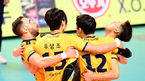 [OSEN=장충, 조은정 기자] 31일 오후 서울 장충체육관에서 ‘도드람 2022-2023 V리그’ 남자부 우리카드와 KB손해보험의 경기가 열렸다.3세트 KB손해보험이 득점에 환호하고 있다. 2023.01.31 /cej@osen.co.kr