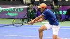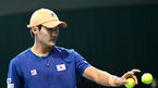 [OSEN=올림픽공원, 최규한 기자] 4일 서울 방이동 올림픽공원 실내테니스장에서 ‘2023 데이비스컵 최종 본선 진출전’(4단 1복식) 한국과 벨기에의 경기가 열렸다.1단식, 벨기에 지주 베리스가 공격을 시도하고 있다. 2023.02.0